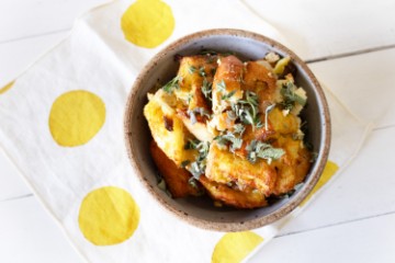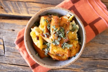 Our chefs roast brussel sprouts, lacinato kale, and butternut squash until golden brown, toss them in a sweet and herby maple-rossemary vinaigrette and garnish it with toasted pumpkin seeds. Enjoy cold or gently warmed.
